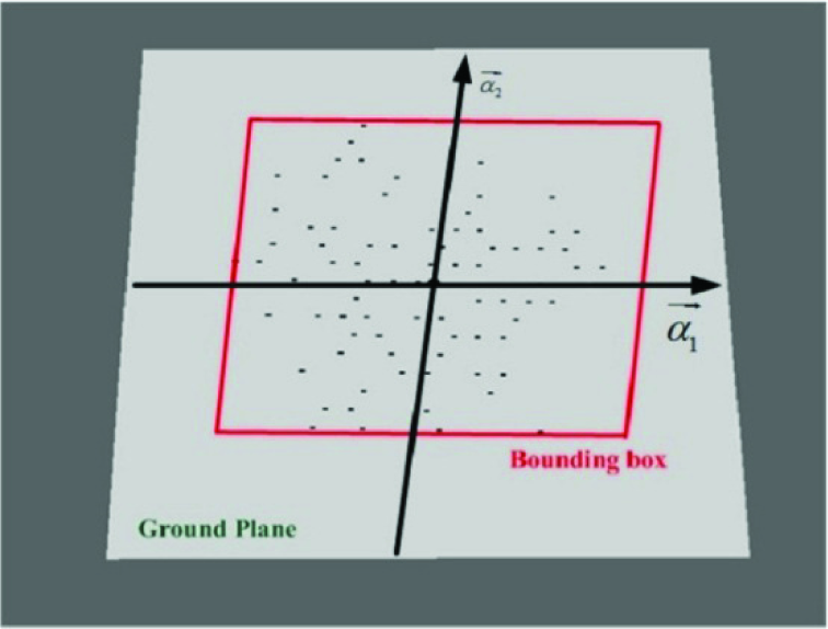 3D points are projected to the ground plane The projected bounding box Compute the eigenvalues (λ1,λ2,λ3) and eigenvectors (α1,α2,α3) of all Compute the projected bounding box of all